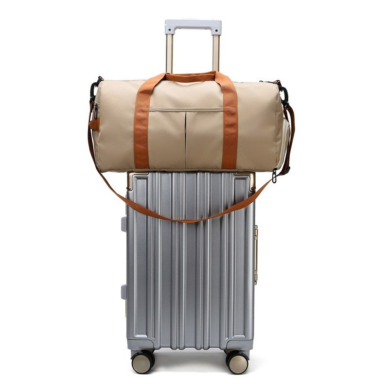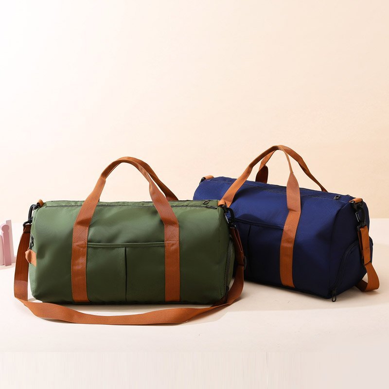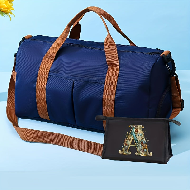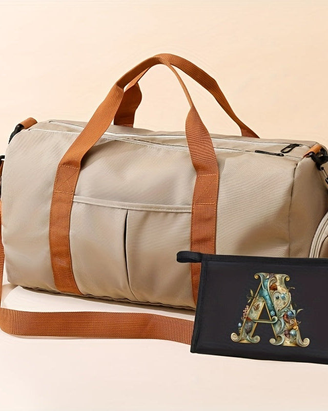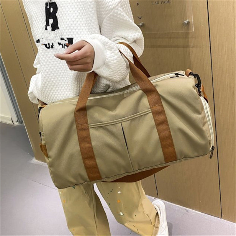 Large Capacity Sports Gym Bag with Yoga & Swim Training Pockets - Durable Nylon Travel Duffel with Shoulder Strap, Brown Trim, and Multiple Compartments for Short Trips, Fitness, and Storage, Travel Duffel|Trendy Duffel Bag|S